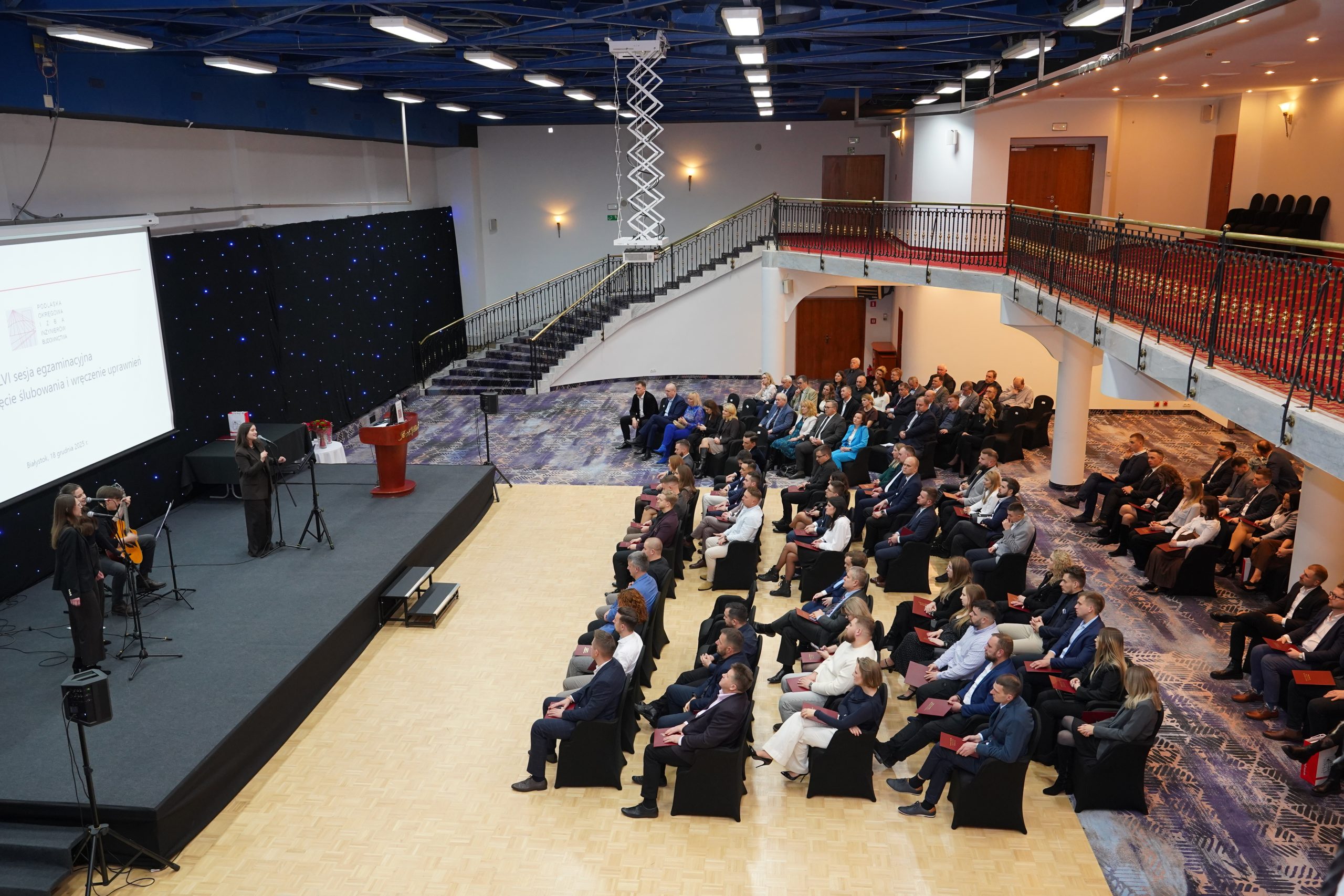 Tradycyjnie, wręczenie uprawnień budowlanych w Podlaskiej Izbie następuje w trakcie organizowanej dwa razy do roku uroczystości. Ceremonia wieńcząca jesienną sesję egzaminacyjną odbyła się 18 grudnia 2025 r.